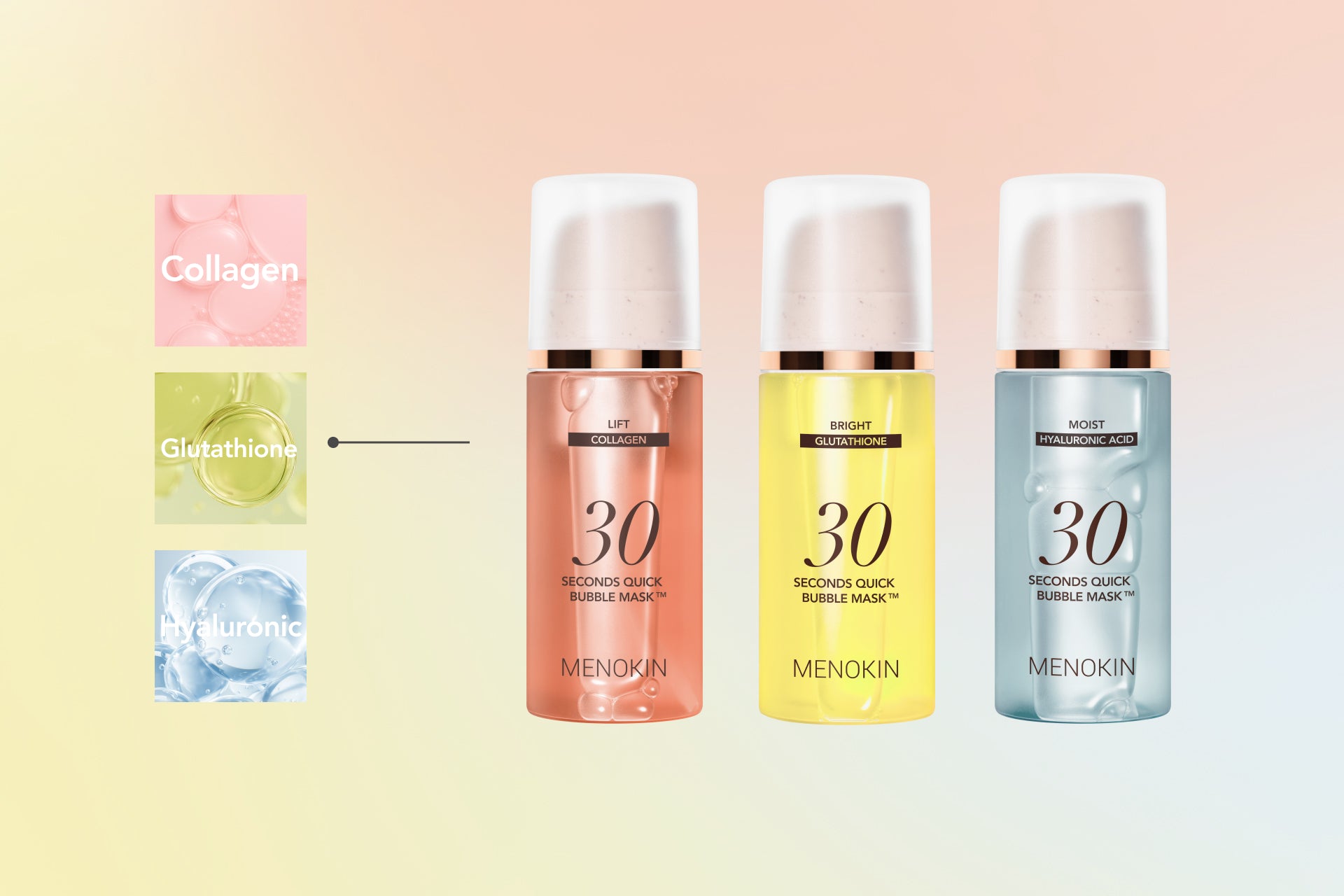 Menokin pioneered the no-sheet bubble mask category with Microbubble Capsules™ — a patented innovation that delivers deep absorption and visible results in just 30 seconds.